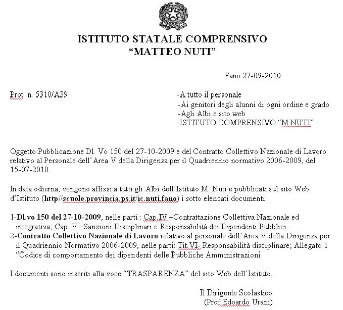 Home Su D.lvo 150/CCNL area V Sanzioni disciplinari POF Carta Servizi Circolare n. 88